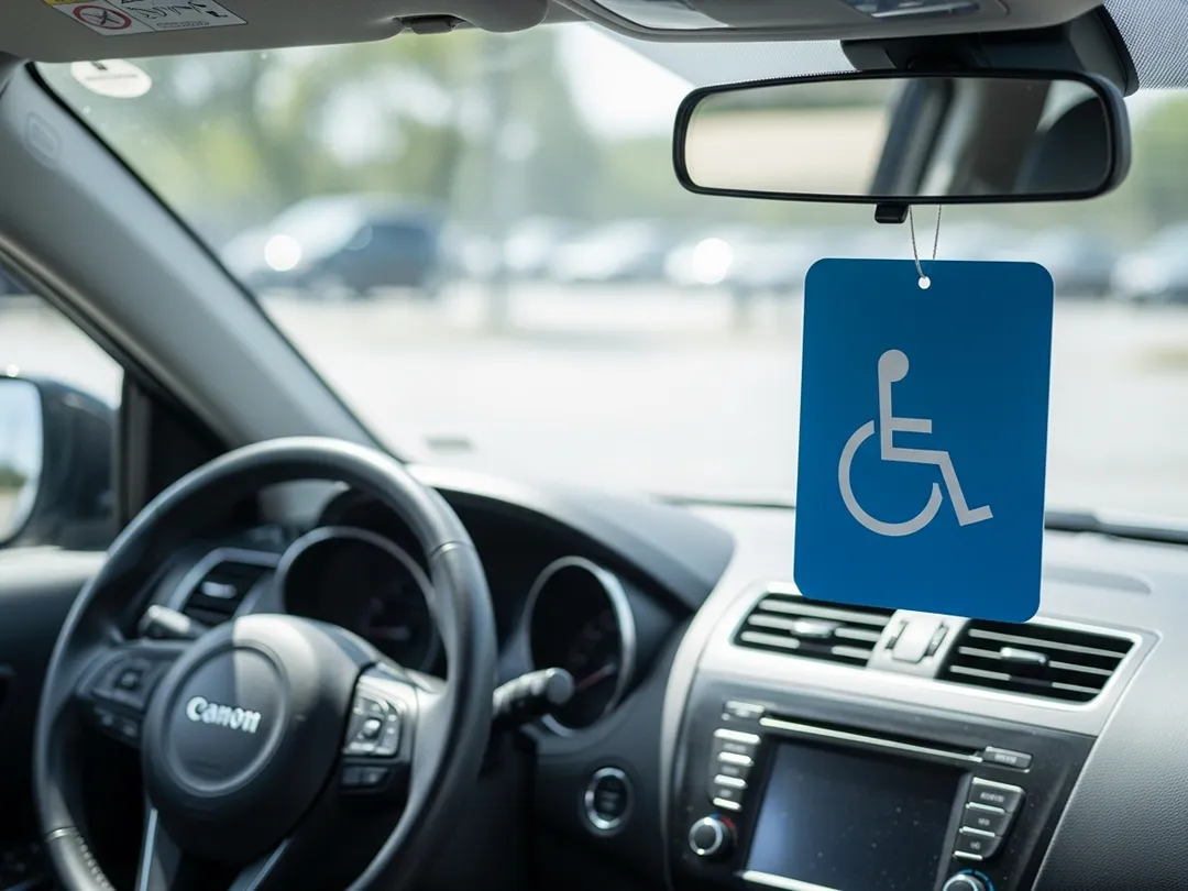 handicap placard hanging rearview mirror car